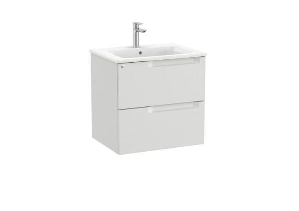 Unik ALEYDA. Conjunto de mueble base dos cajones modelo ALEYDA y lavabo centrado. Acabado gris piedra medida 600x460. Cajones con cierre amortiguado. No incluye grifería