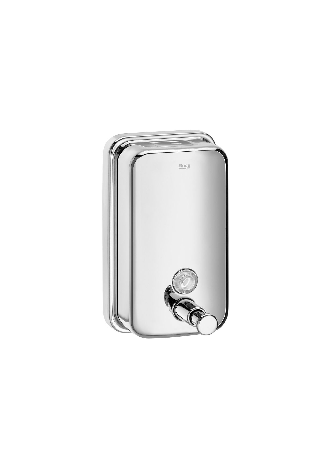 Dispensador de jabón líquido con pulsador con capacidad para 800 ml.