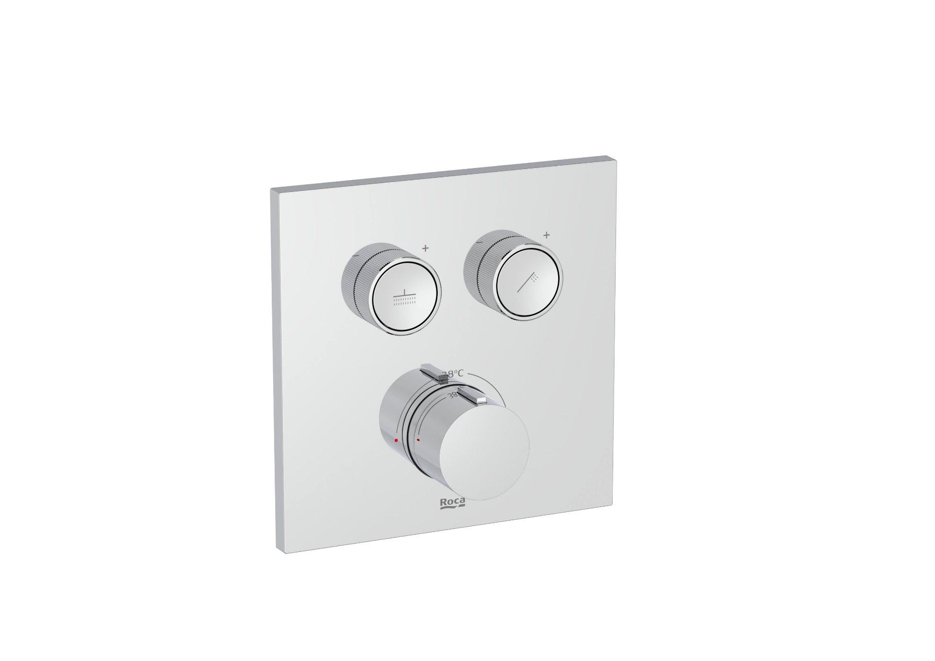 Grifo termostático para baño-ducha T-3000 square cromado. Grifería termostática empotrable para baño-ducha con regulador de caudal. A completar con RocaBox A525869403