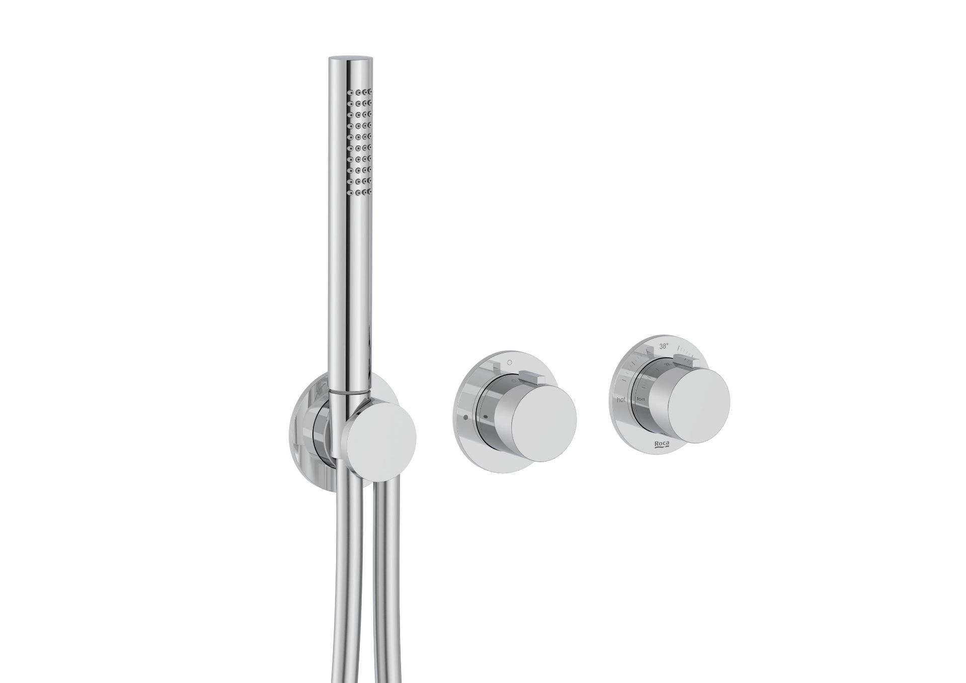 Grifería termostática empotrable para baño-ducha (2 vías) con ducha de mano y soporte con toma de agua. A completar con cuerpo empotrable A5E214AC00
