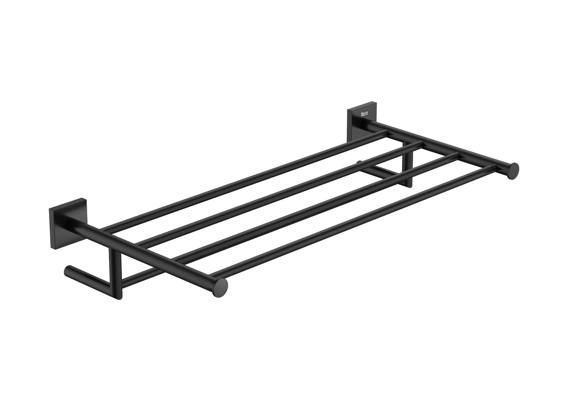 Portatoallas con toallero HOTELS SQUARE negro mate. Medida 630x300x106. Instalación mediante tornillería. Incluido sistema de fijación.